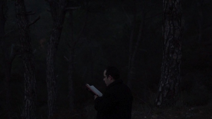 A Syriac priest, starts reading the genesis, in Aramaic -a dead language- few minutes before day fall, in a forest in Mount Lebanon.