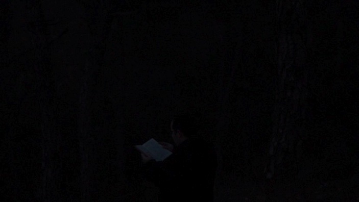 With the light getting dimmer, the reading becomes more and more difficult, the priest stops reading the text, when the aramaic words, totally fade in the night.