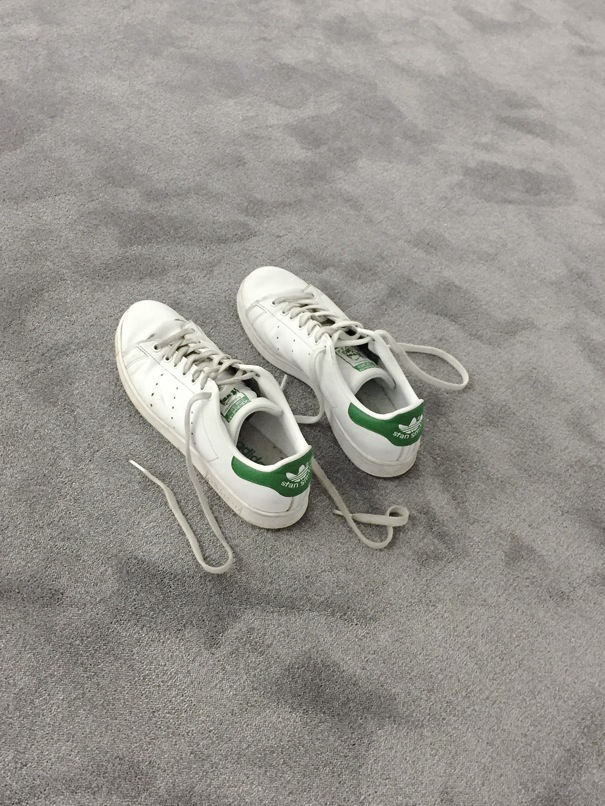 Two new shoes from the same pair are separated, the left one was worn by the artist during his trips in Europe for 6 months. The right one was worn by his friend in Beirut. The two shoes are reunited in Paris, for the exhibition.